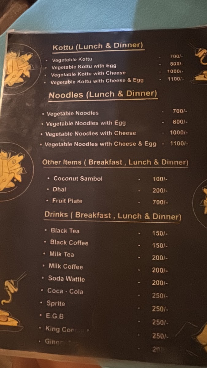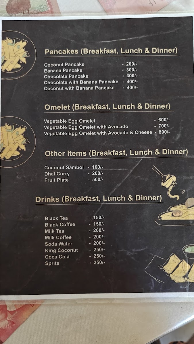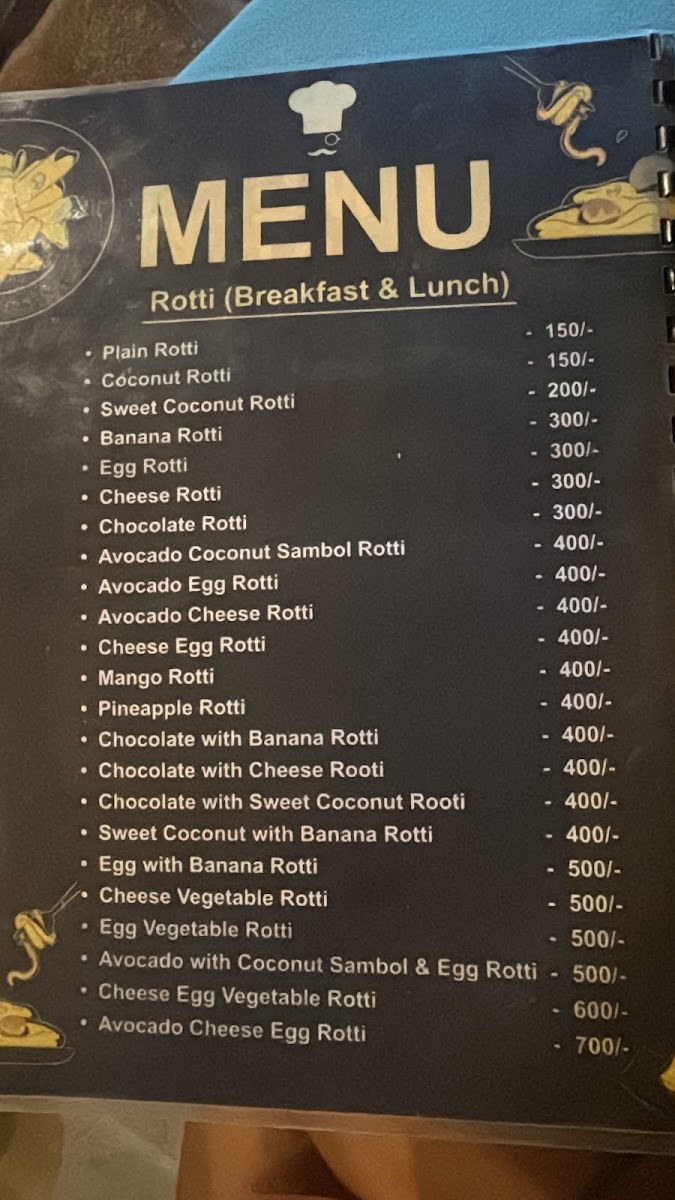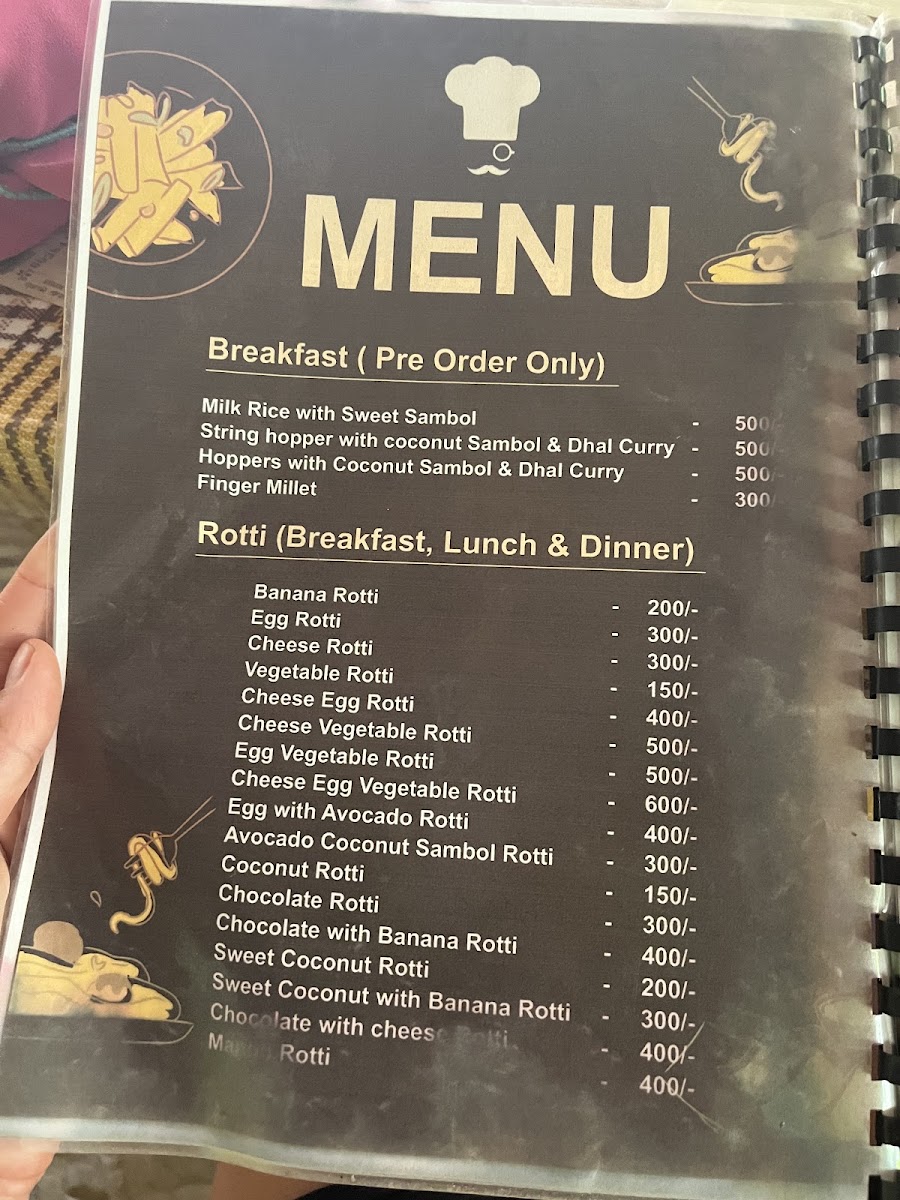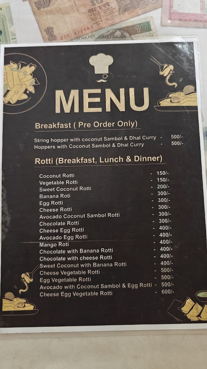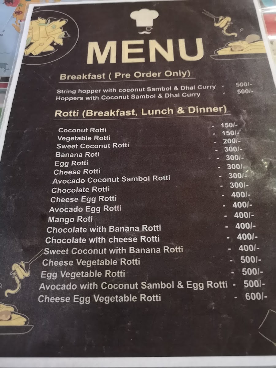 The menu’s straightforward approach pairs well with the welcoming, family-style atmosphere. For morning visits, lighter choices such as chocolate pancakes, fruit plates, or a vegetable omelet provide a gentle, fresh start. When the day winds down, dishes like cheese egg kottu, banana chocolate roti, or the traditional Sri Lankan rice and curry invite a more relaxed, communal dining experience.